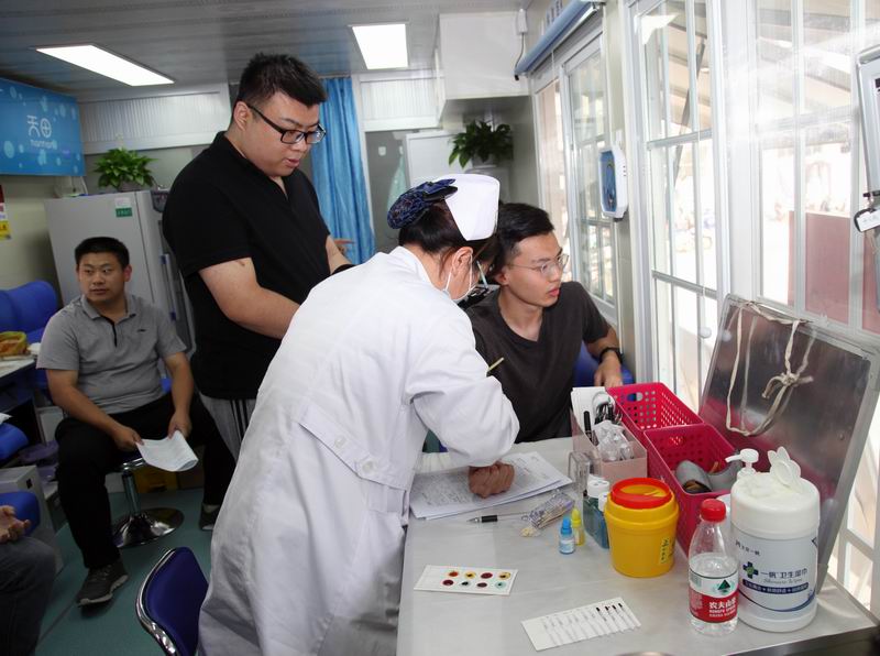 公司志愿員工捐獻的血液緩緩流進獻血袋,滴滴血液延續了生命的長度,成為傳遞社會愛心的紅色紐帶。